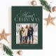 Este Cartões de foto de Natal elegante apresenta um tratamento de Natal na moda Merriest e uma grande foto quadrada na frente. A parte de trás deste simples cartão com fotos de feriado apresenta uma colagem de três fotos. Este cartão verde funciona bem como um cartão de Natal de família, como um cartão de Natal de casal recém-casado e muito mais. Encontre mais cores e estilos na coleção de Lea Delaveris Design. Também disponível como download de cartão de Natal digital para enviar digitalmente ou impressão por conta própria.