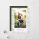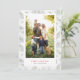 Um simples e moderno cartão de foto de férias que emoldura sua foto favorita em um estilo Polaroid com padrão de galhos de aquarela verde com neve. Edite e personalize seu cumprimento abaixo da sua foto em vermelho e verde. O verso do cartão é em verde caçador sólido.