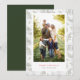 Cartão De Festividades Foto em moldura verde e branca com neve e folhas