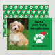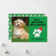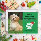 Cartão de Natal engraçado e fofo de cachorro decorado com uma pegada e um chapéu vermelho de Papai Noel. Adicione uma foto do seu cachorro na frente deste cartão de Natal verde. O texto diz: "Tenha um Natal positivamente adorável".