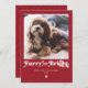 Cartão de Natal engraçado de foto de cachorro fofo e brilhante