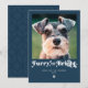 Cartão de Natal engraçado com foto de cachorro fofo e brilhante