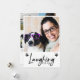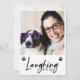 Engraçado Rir Todo o Caminho dizendo em carta de festas de script de pincel manuscrito com uma foto na frente junto com pegadas bonitas. Há quatro fotos com sua mensagem e nomes atrás. Este cartão será um guardião e as pessoas vão adorar. Veja a coordenação de itens no nosso compro, Encantado Finch.
