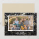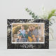 Este cartão de foto de Ano Novo apresenta um fundo cintilante de estrelas douradas e prateadas sobre preto. O design é acentuado com texto manuscrito moderno "vinte e um". Personalize este cartão de saudação elegante com sua foto favorita.