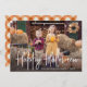 Compartilhe saudações sazonais quentes com este cartão com fotos de Halloween bonitinho com "Feliz Halloween" em uma camada branca de script manuscrito. Personalize o design com sua foto horizontal favorita e seu nome de família em texto branco correspondente para um toque pessoal. O verso mostra um padrão de xadrez de creme e cor d'água laranja, adicionando um encanto arecível à sua correspondência mestiça. Perfeito por enviar para amigos, familiares e entes queridos.