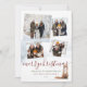 Personalize suas 4 fotos especiais, nome da família e data neste cartão de feriado chic com uma raposa fofa em um fundo de floresta de inverno. Projetado por Thisnotme©