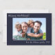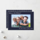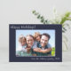 Foto: família simples moderna Feliz Feriados marinho design Azul. Altere a foto e o texto 1 clicando em Personalizar acima. A placa apresenta uma linha de foto, saudação e assinatura em um roteiro manuscrito branco divertido.