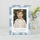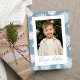 Cartão De Festividades Foto Festiva Azul e Flocos de Neve Brancos