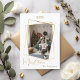 Um cartão de Natal moderno e elegante, com um falso quadro geométrico dourado. Personalize e adicione seu nome de família. Feliz Natal escrito com um roteiro de estilo manchado. Voltar: adicione sua nota e seus nomes.