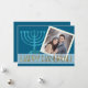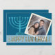 Cartão De Festividades Foto Hanukkah Azul Branco Menorá Dourada Brilho