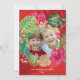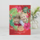 Envie uma fatia de paraíso para seus entes queridos porque o Natal pode ser feliz e brilhante, mesmo sem neve! Ao redor da sua foto familiar com uma ilustração vibrante de uma coroa de Natal de folhagem tropical. Personalize este cartão com seu nome e ano. O brilho dourado usado nesse impressão é simulado, não é uma relíquia real. Arte original de Marketa Stengl.