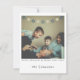 Uma estrela de 5 pontos e 6 pontos Streamer (representando Hanukkah e Natal) sobrepõe sua foto (como na sua foto) em um cartão de estilo fotográfico instantâneo. A foto tem um filtro Zazzle para uma aparência antiga e seu cartões de natal personalizado está em uma fonte de estilo manuscrito.