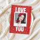 O cartão de foto do amor vermelho apresenta um design vermelho ousado com uma foto personalizada para um toque especial. É especial porque transforma seu amor em um item precioso que parece pessoal e atemporal. Perfeito para o dia dos namorados ou aniversário, para marido, esposa, casal, namorado ou namorada