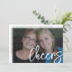 FRONT DESIGN: Uma saudação de Natal de sexta-feira - aplausos - está no topo da foto em uma fonte grande e moderna. A foto está fora do centro, e a assinatura da família envolve a borda branca. Um sotaque fino na borda branca também está incluído. — DESIGN de trás: o design de trás inclui um padrão de gavão em tons de azul. As cores podem ser alteradas na área design avançada.