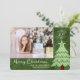 Insira a foto e o nome da sua família, assim como o ano atual, neste cartão de Feliz Natal personalizado com árvore de Natal verde. Projetado por Robin; gráfico em árvore de Nini Ssucaps/Uso Comercial