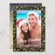 Cartão De Festividades Foto personalizada com floco de neve Preto e Doura