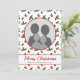 O padrão festivo original do Destei de plantas verdes e vermelhas da Holly de Natal / plantas comuns de Holly junto com arcos vermelhos. Sobre o padrão há um lugar para uma foto redonda que é enquadrada por uma borda vermelha. Há também duas áreas de texto personalizáveis.