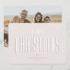 Um cartão de Natal fotográfico grande, ousado, simples e sem complicações. Perfeito para uso pessoal ou corporativo. Apresenta uma saudação de feriado em uma fonte retrô cercada por estrelas estilizadas e detalhes personalizados editáveis abaixo. Basta trocar a foto na parte de trás pela sua. Também disponível em outras cores, com uma mensagem impressa no verso em vez de uma foto, como um design prensado em folha metálica e como cartões dobrados.