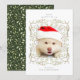 Copyright © 2019 Socialite Designs Inc. & LICENCORS - Este cartão com fotos elegante apresenta uma cor d'água e uma coroa de folhas para cercar sua foto de estimação. O verso tem um padrão de folha de aquarela em um fundo verde escuro. Adicione sua foto especial para enviar a sua família e amigos para desejar Feliz Natal.