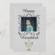 Espalhe a alegria deste Chanucá usando este cartão de saudação de fotos prateadas. Apresentando "Happy Hanukkah" escrito em volta de uma linda foto, insira sua foto no meio. Escolha o seu hoje! Design Sonya DeHart http://www.sonyadehartdesign.com | http://www.sonyadehartdesign.etsy.com