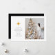 Cartão de saudação religioso simples e mínimo apresenta uma estrela de Natal dourada com uma mensagem de cartões de natal editável. Bonito script e uma foto completam a frente da placa branca limpa. O fundo é preto clássico elegante.