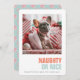 Este simples e moderno cartão com fotos de natal "malvado ou agradável" apresenta um fundo branco com simples letras em negrito no salmão vermelho e azul claro. O verso apresenta um fundo azul claro com padrões de doces. Personalize para suas necessidades. Você pode encontrar produtos correspondentes na minha loja.