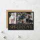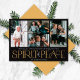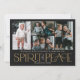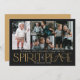 Estes simples cartões de saudação fotográficos de feriado apresentam a saudação, "Desejando-lhe um Feliz Natal e um Feliz ano novo", juntamente com a saudação, "Espírito de Paz", em grandes letras de marfim e ouro sobre um fundo preto com espaços reservados para adicionar quatro das suas fotografias favoritas, nome da família e o ano.