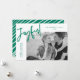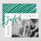 Envie alegria aos amigos e à família com um cartão de férias simplesmente alegre de Late Bloom Paperie! O cartão de feriado moderno apresenta "Joyful" em um roteiro de pincel com letra verde. Personalize a frente do cartão adicionando sua foto, saudação personalizada, nome da família e o ano. A placa reverte para exibir um padrão de faixa diagonal verde e branca.