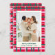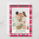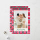 Com uma moderna torção e cores clássicas de feriado, este cartão de feriado de na moda apresenta um confortável e festivo padrão de xadrez de Natal em vermelho e verde vibrantes. Personalize-o facilmente com sua foto vertical e seu texto.