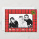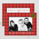 Cartão de foto de férias xadrez vermelho elegante que pode ser personalizado. Foto na frente e votos no verso.