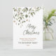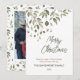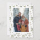 Elegante cartão de Natal com folhagem de inverno em aquarela com frutas. Pode ser personalizado com o seu sentimento e nome da família, bem como o ano. A parte traseira do cartão apresenta um padrão coordenado e um espaço para adicionar a sua própria fotografia.
