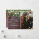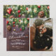 Celebre a época festiva com estes cartões de natal rústicos personalizados com uma foto de família para ser substituída pela sua, um fundo de madeira escura, ramos de árvore de natal festivos, decorações de árvore vermelhas e douradas, luzes cintilantes, seu nome e o ano.
