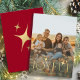Simples modelo de cartão de Natal personalizado moderno e minimalista com dourado falso Típica alegre com estrelas, uma foto, nome de família e seu texto.