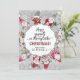 "Cartão de Natal com Foto de Gnome Fofo de Natal Floco de Neve Cinza Vermelho." Fundo suave de aquarela texturizada prateada com flocos de neve desenhados à mão. Gnomos pintados à mão com aquarela formam um círculo em torno de uma borda de folhagem. "Tenha um Feliz Natal" e o seu nome com mensagem é apresentado no centro do design. Eles carregam mensagens inspiradoras como: Paz, Alegria, Amor e Eu amo Gnomos! Toda a arte foi criada pela renomada e licenciada artista internacional, Audrey Jeanne Roberts, direitos autorais reservados.