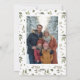 Elegante cartão de Natal com vegetação de inverno em aquarela. Pode ser personalizado com o seu sentimento e nome da família, bem como o ano. A parte de trás do cartão apresenta um padrão de coordenação e um espaço para adicionar a sua própria fotografia.