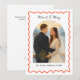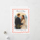 Celebre a primeira temporada de festas como recém-casados com este cartão de foto elegante "Casados e Felizes". Apresenta uma charmosa moldura vermelha ondulada, perfeita para mostrar sua foto favorita de casamento ou de casal. Personalize com seus nomes e ano na frente e adicione sua mensagem sincera no verso. Ideal para anunciar seu casamento ou enviar votos calorosos de festas para familiares e amigos.