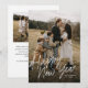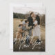 Cartão de Férias de Fotografia Simples de Caligrafia Moderna para Feliz Ano Novo 2 apresenta uma escrita divertida e moderna em uma foto de página inteira, junto com uma segunda foto no verso e espaço para sua mensagem.