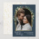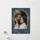 Este design apresenta um arco de folhagem moderno com uma moldura dourada brilhante delicada e pinceladas douradas com uma única foto vertical. Para fazer alterações avançadas, selecione a opção 'Clique para personalizar ainda mais' na seção 'Personalize este modelo'. Aqui, você pode editar/adicionar caixas de texto, cor e fonte.