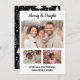 Modelo de cartão de Natal com três fotos. Adicione três das suas fotos de família favoritas na área para personalizar. Fundo de árvore de Natal abstrata moderna em preto e branco.