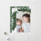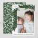 Guirlanda de Pinheiro Verde Rústico com Padrão Botânico Branco no Verso Foto Cartão de Natal de Férias de Natal.