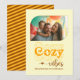 Traga a diversão e o espírito festivo da temporada à vida com nossa coleção de cartões de Natal Cozy Vibes. Com tipografia retrô em negrito e padrões de listras coloridas, esses cartões de foto totalmente personalizáveis são perfeitos para famílias que amam compartilhar vibrações alegres de Natal. Personalize com sua própria foto e saudação para uma abordagem lúdica e moderna do cartão de Natal clássico. Disponível em várias paletas de cores para combinar com todos os estilos. Se você tiver uma determinada paleta de cores em mente que não vê, envie uma mensagem para Party Peeps e ela pode ser criada sob medida só para você!