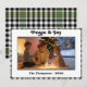 Celebre a temporada com este cartão de Natal xadrez preto e branco elegante, acentuado com tons sutis de verde e dourado para um toque festivo. Com espaço para a foto da sua família, nome e ano, este cartão moderno inspirado no tartan combina o charme clássico do feriado com um estilo contemporâneo. Uma escolha atemporal para casais e famílias.