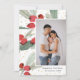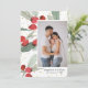 Espalhe alegria natalina com este cartão de Natal festivo que apresenta suas fotos favoritas cercadas por frutas em aquarela, folhas verdes e pontos de purpurina dourada. Altere a saudação de Feliz Natal para Ano Novo, Natal, etc. O verso apresenta duas fotos. Um cartão realmente divertido e único que certamente espalhará alegria natalina!