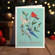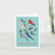 Ilustração original de pássaros de inverno descansando em galhos de azevinho. Personalize o interior conforme desejado, cores e foto opcionais.