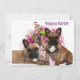 French Bulldog mit Blumen. Die französische Bulldogge ist ein kleiner Molosser ist sehr agil, sportlich und aufgeweckt. Der Frenchy ist ein Clown unter den Hunderassen und äußerst liebenswert. Der Bully ist sehr kinderlieb und ein treuer Familienhund. Durch seine Größe ist er auch in der Wohnung gut zu halten, selbstverständlich liebt er seinen regelmäßigen Spaziergang. Frohe Ostern