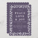 Cartão de Férias Plano com uma fronteira/quadro de folha de azevinho e frutas vermelhas impressa à mão em linóleo branco. Todo o texto é totalmente editável, então você pode facilmente alterar a mensagem e/ou a fonte. Muito espaço na parte de trás para adicionar uma mensagem mais longa/resumo anual, se desejar, ou trocar por sua própria foto. Outras cores, formas e produtos coordenados estão disponíveis na minha loja.