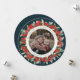 Um cartão de Natal/Férias elegante e verde escuro que pode ser impresso em papel cartão circular ou quadrado. Bagas vermelhas pintadas à mão e caules de eucalipto formam uma coroa de Natal em torno da sua foto. Todo o texto é totalmente editável para que você possa alterar facilmente a mensagem/estilo/cor/tamanho. O verso tem texto de modelo para uma mensagem impressa mais longa - exclua antes de encomendar se não desejar. O verso também pode ser trocado por uma foto, se preferir. Outras cores e itens coordenados disponíveis.