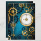 Cartão De Festividades Fundo de turquesa Steampun com engrenagens