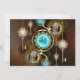 Cartão De Festividades Fundo Rusty Steampunk com Lentes Turquesa