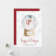 Este cartão de Natal fofo e caprichoso apresenta um belo boneco de neve em aquarela dentro de um globo de neve com flocos de neve cinza claro e um 'feliz natal' elegante em letra manuscrita. O verso do cartão inclui uma mensagem para personalizar ou deixe em branco para excluir a mensagem.